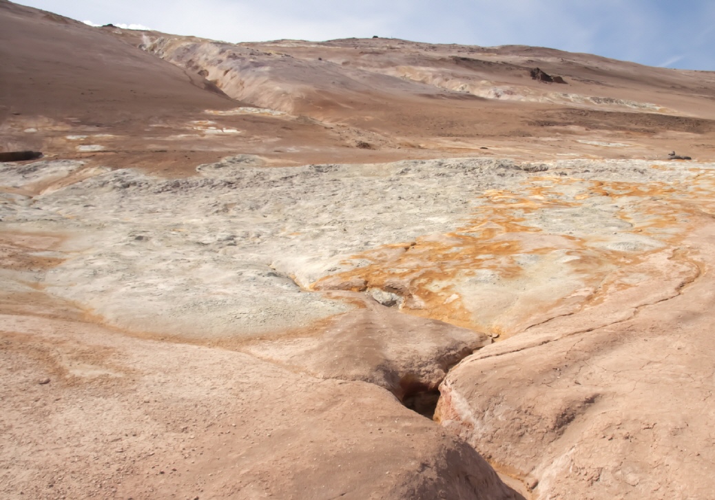 Wir befinden uns im Solfatorengebiet Námaskarð,