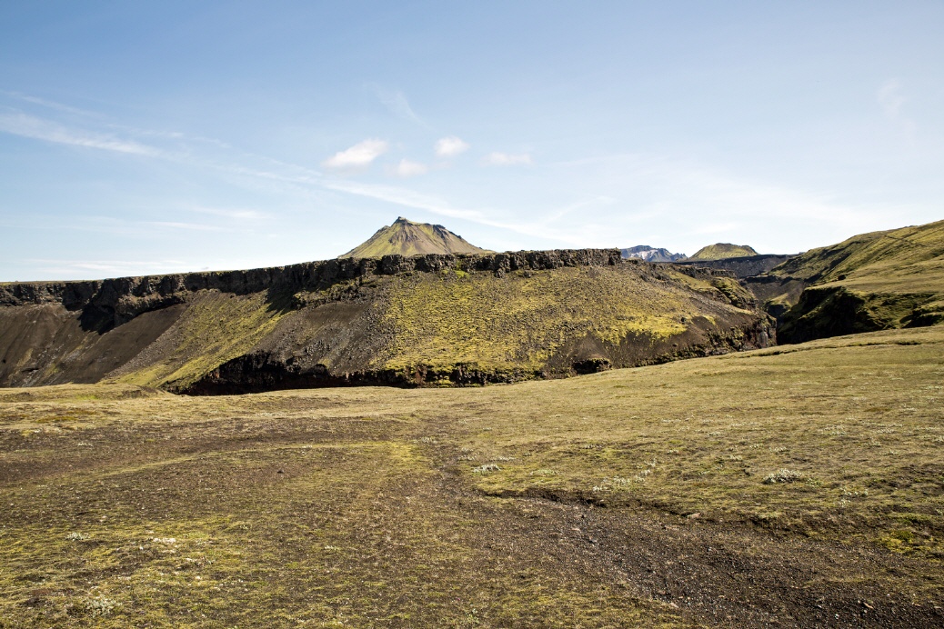 Vor uns liegt der Anfang vom Markarfljót Canyon.