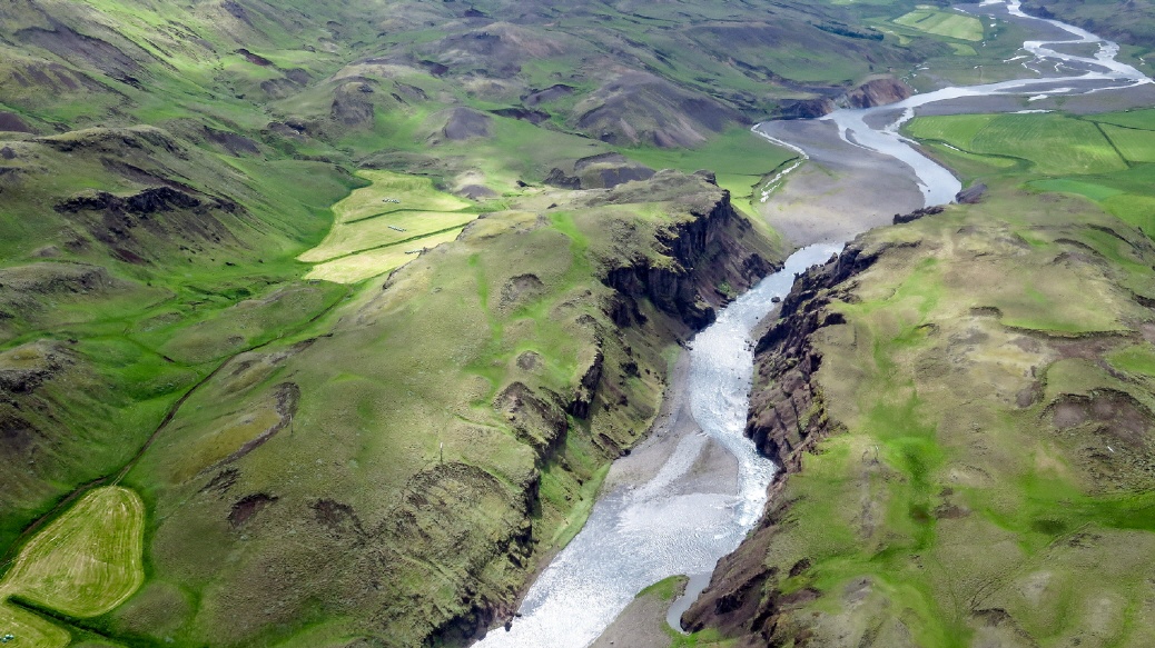 Der Blick hinunter auf die Þjórsá, die hier ihrem natürlichen Flussbett folgt.