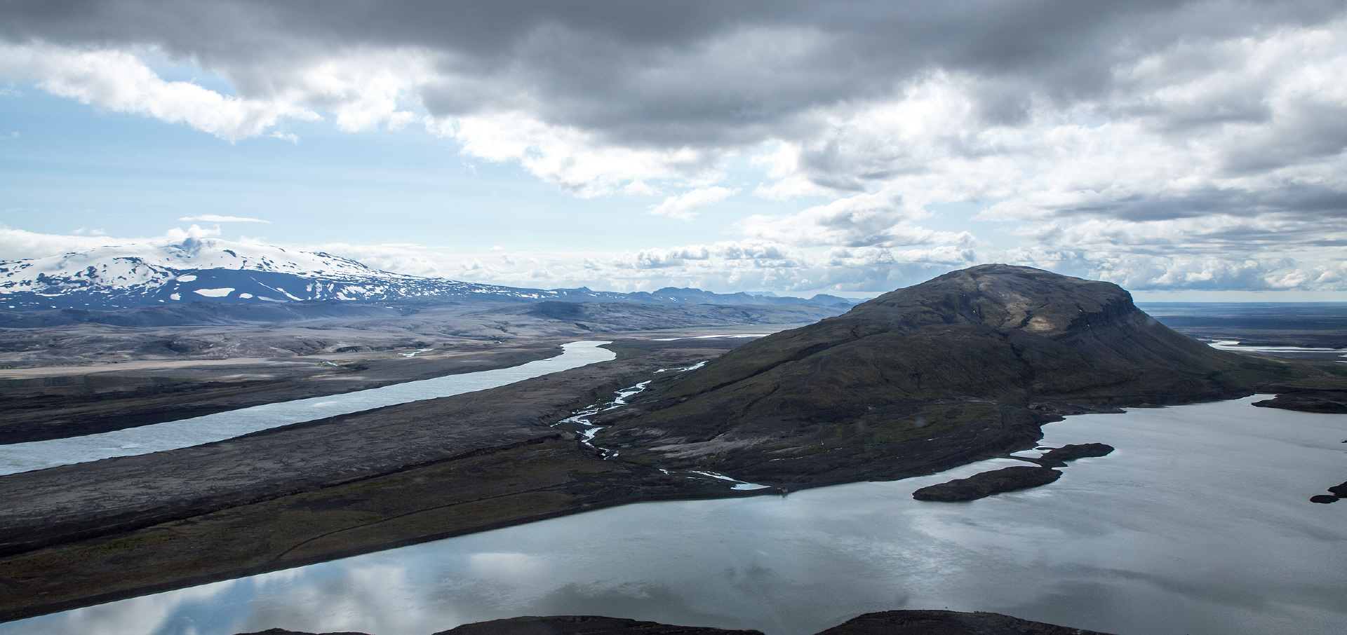 der übergelaufene Dómadalsvatn (rechts) und dem