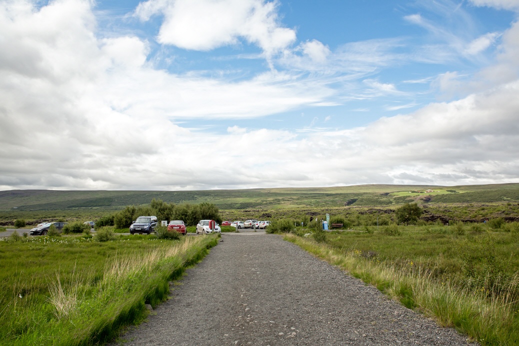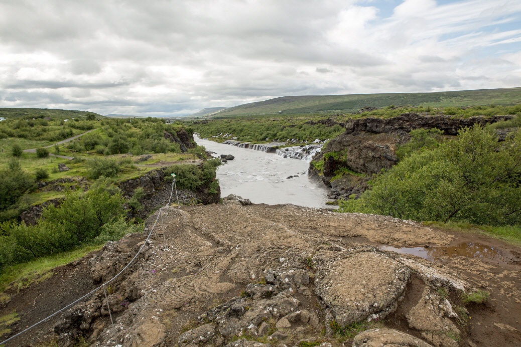 Man gelangt auf ein Plateau, von dem man einen guten Blick hinüber zur anderen Attraktion hat - die Hraunfossar.