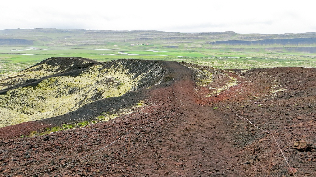 Zuerst fällt der Blick auf den Nachbarkrater, den Grábrókarfell.