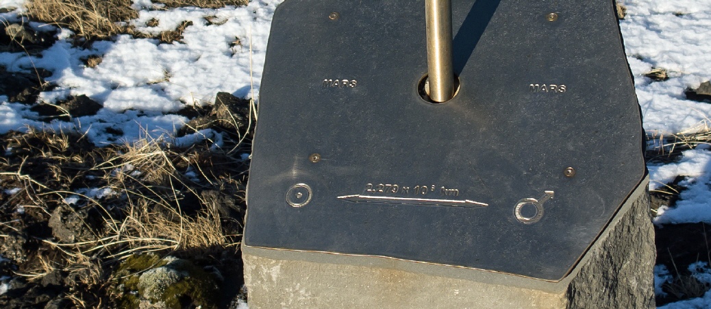 Die Entfernung zur Sonne beträgt 227.900.000 km.