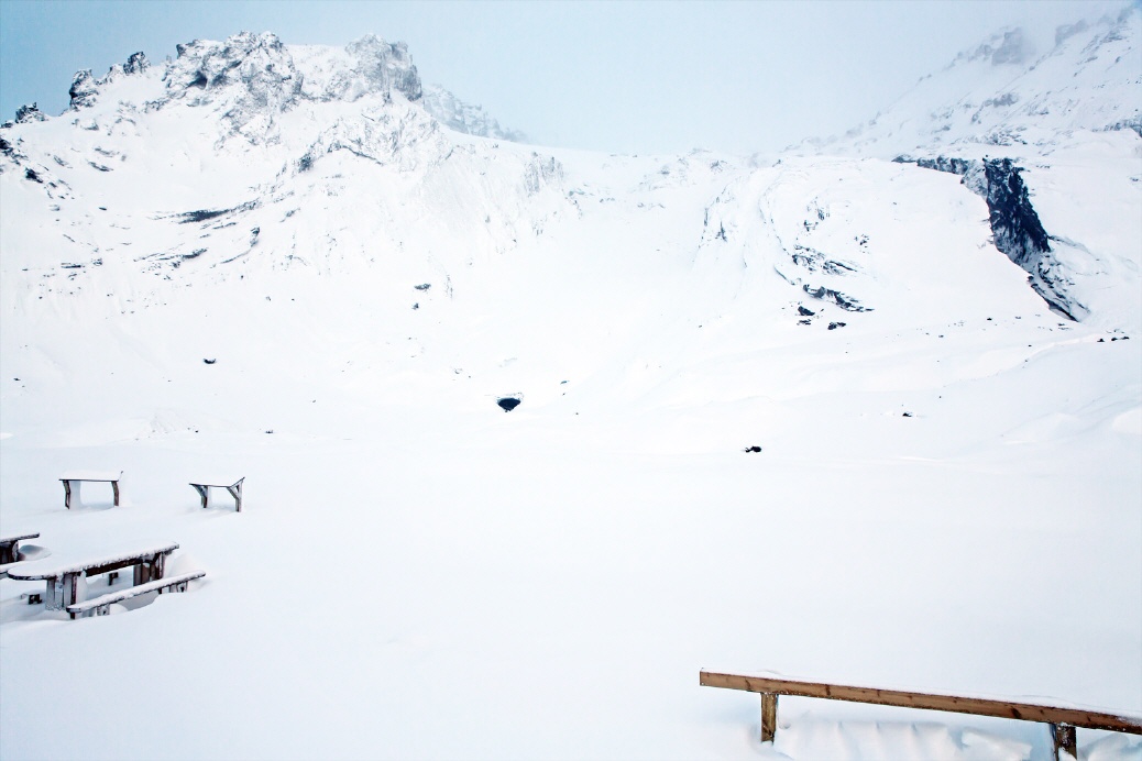 Wir kommen uns wie auf einer Polarexpedition vor. Ein starker kalte Wind kommt vom Gletscher herunter